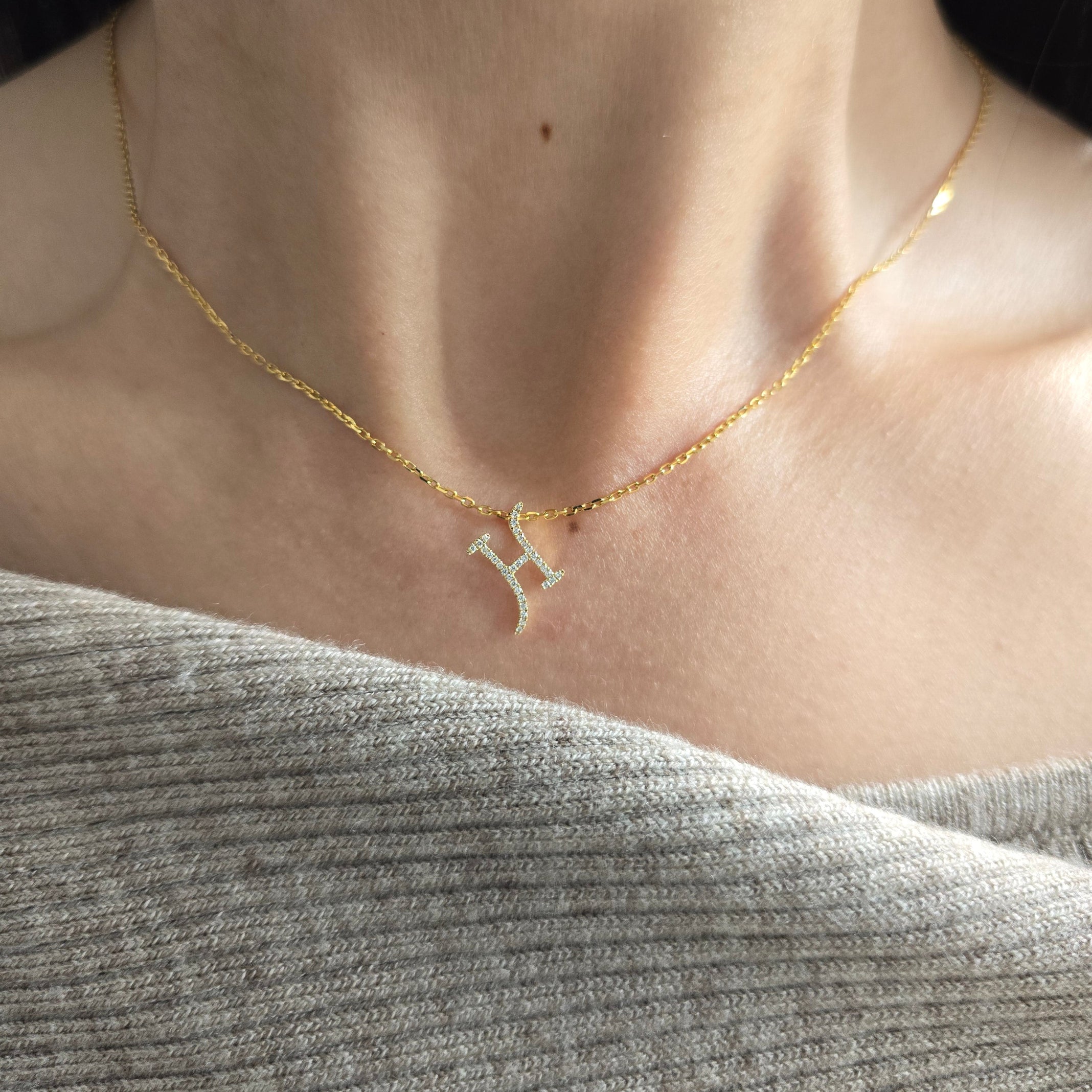 18ct Yellow Gold Natural Diamond Initial H. Set with 33 round diamonds Total carat weight: 0.07ct  Colour...