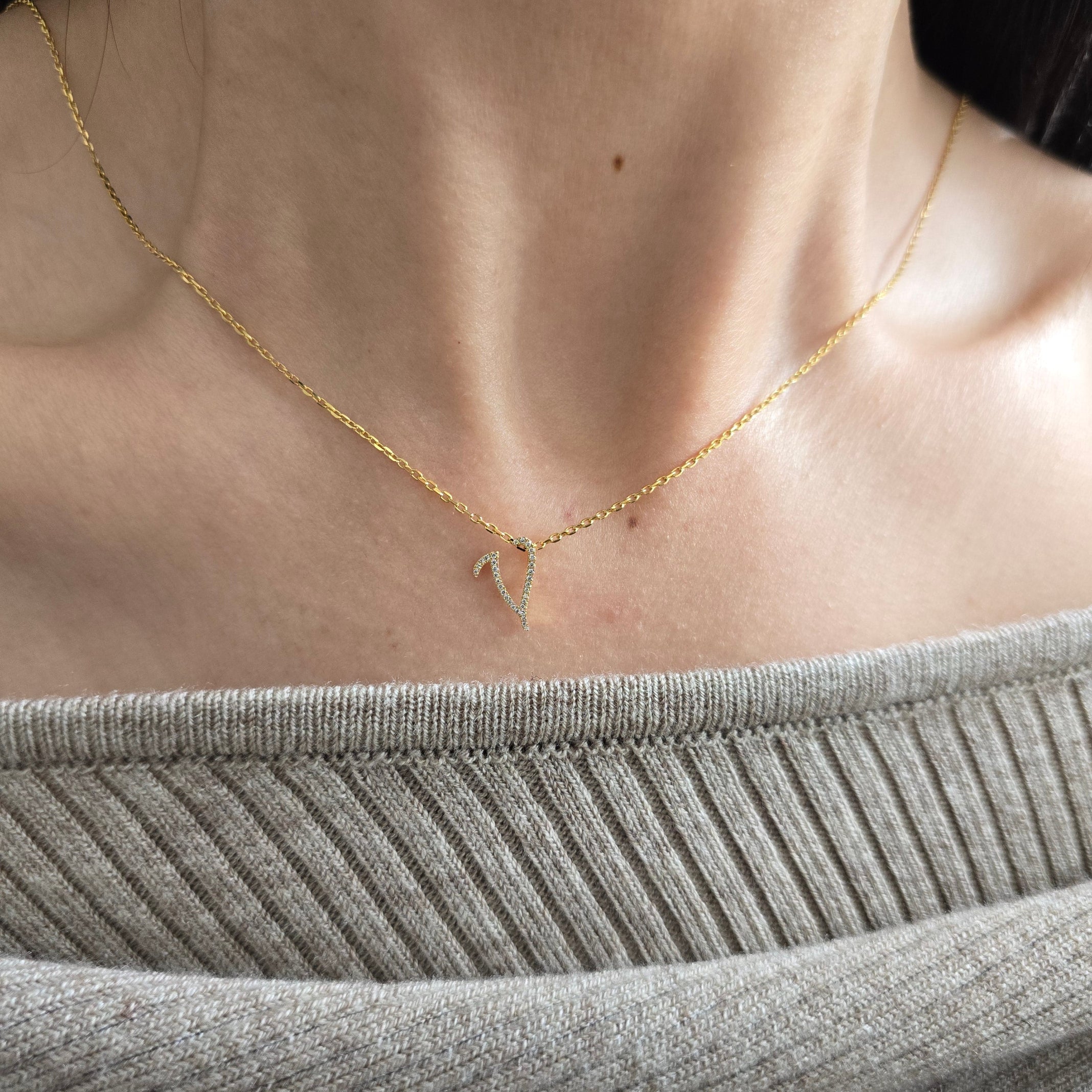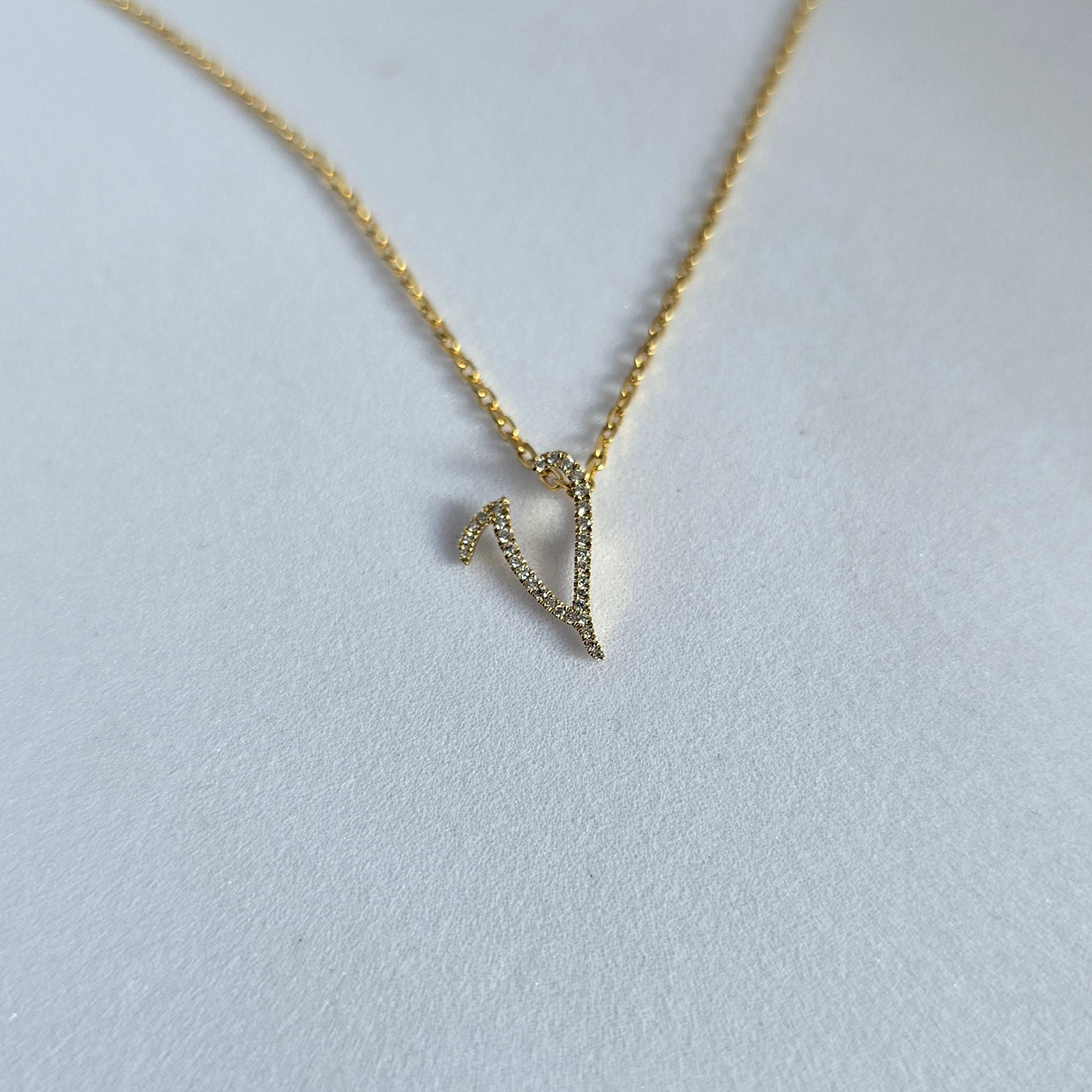 18ct Yellow Gold Natural Diamond Initial V. Set with 32 round diamonds Total carat weight: 0.05ct  Colour...