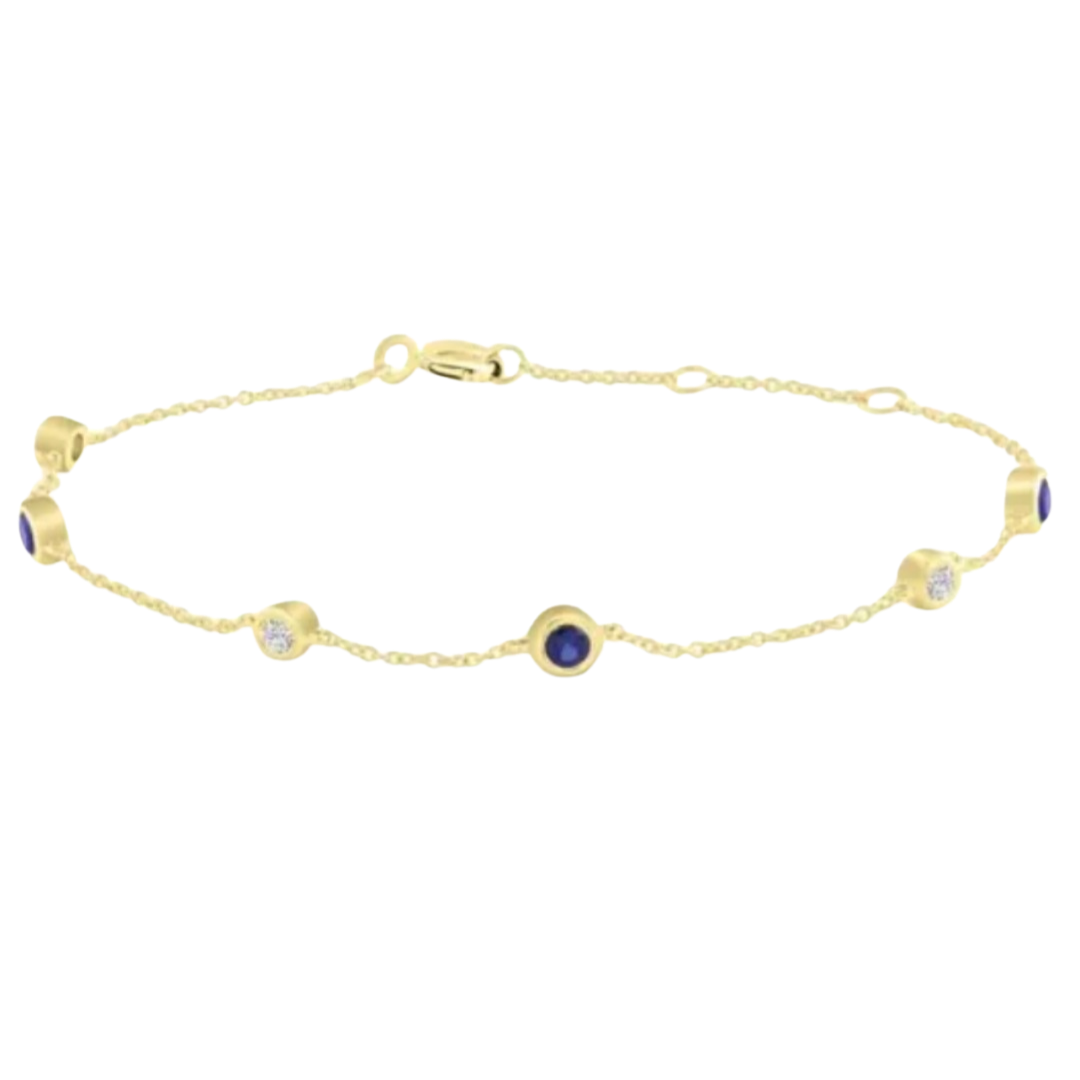 Crafted with care in Australia, this timeless bracelet is available in your choice of solid 9ct or 18ct gold. It features a fine, delicate chain adorned with beautifully bezel-set gemstones that you can personalise by choosing your own birthstone.