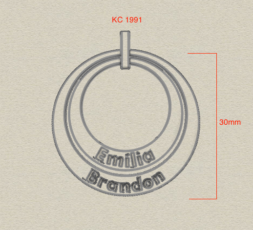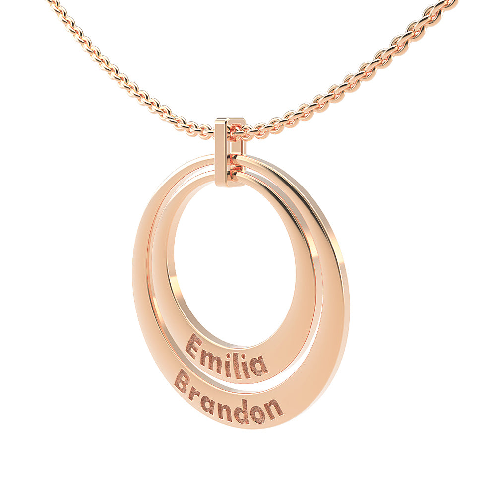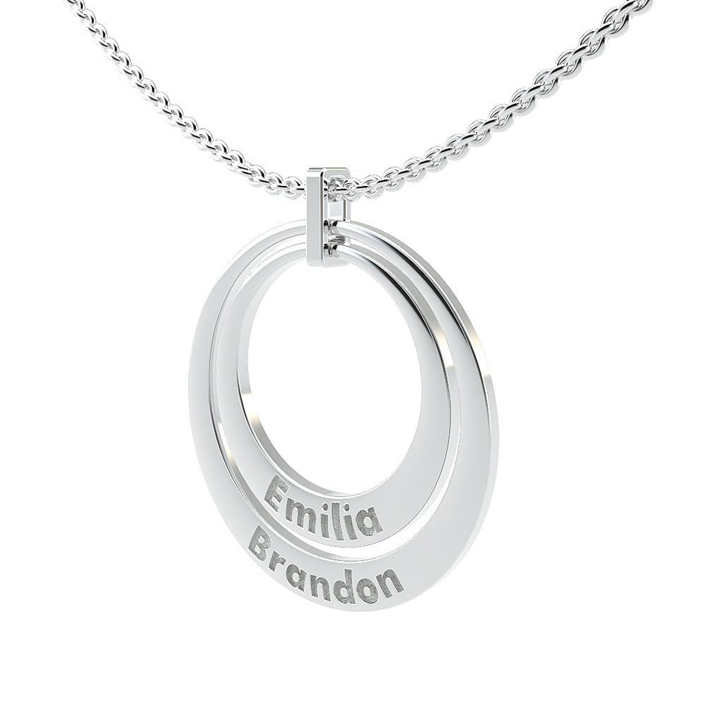 This exquisite 30mm diameter pendant is crafted and features a Double twist Disk Customized name design. Personalize the front with 2 engravings.Ā