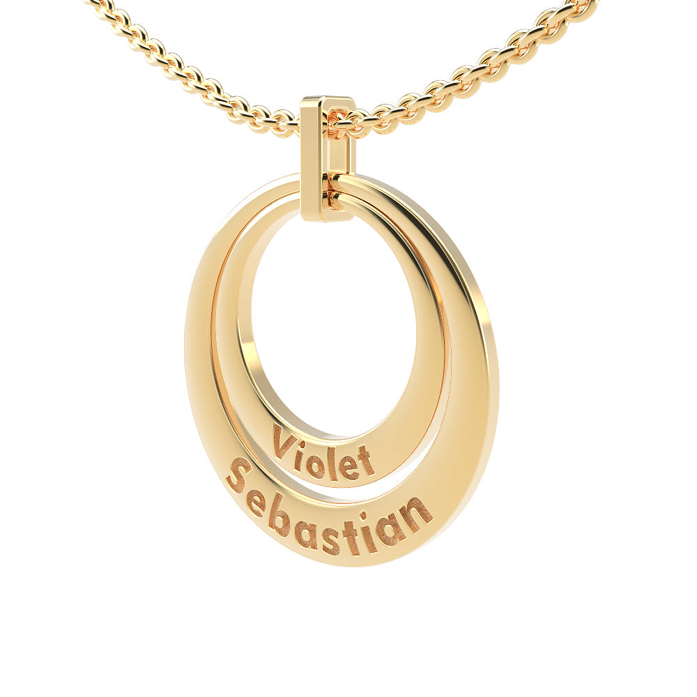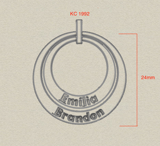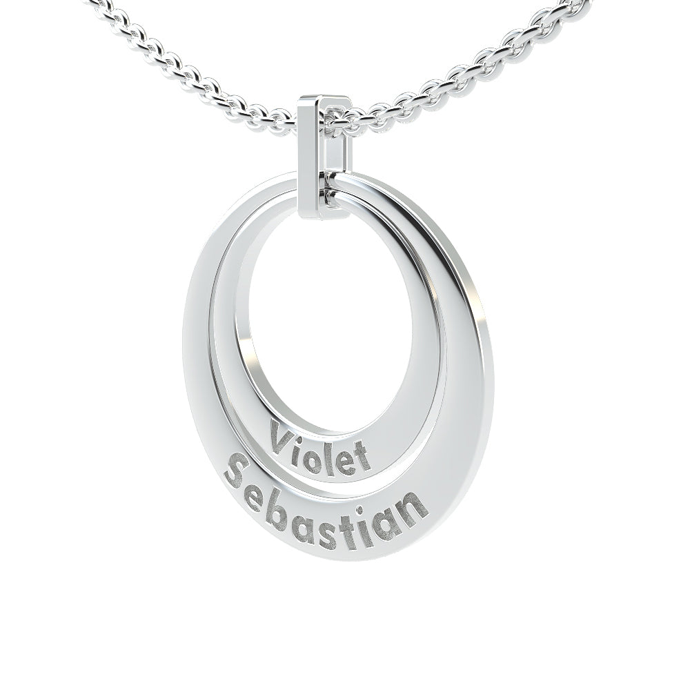 This 24mm diameter pendant is crafted and features a Double Disk Customised name design. Personalise the front with  2 engravings.