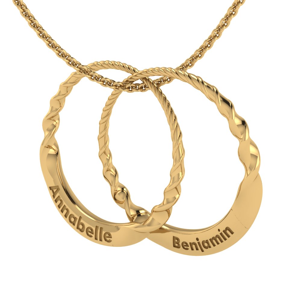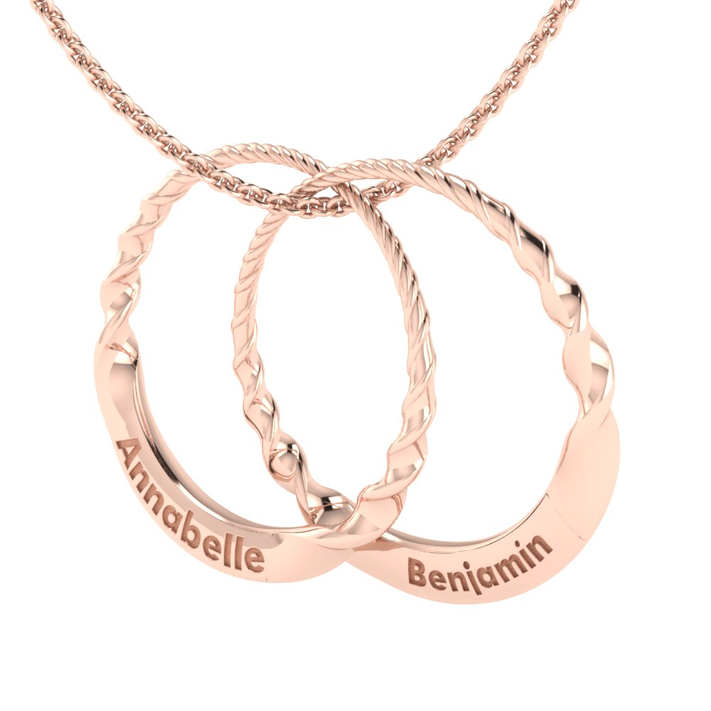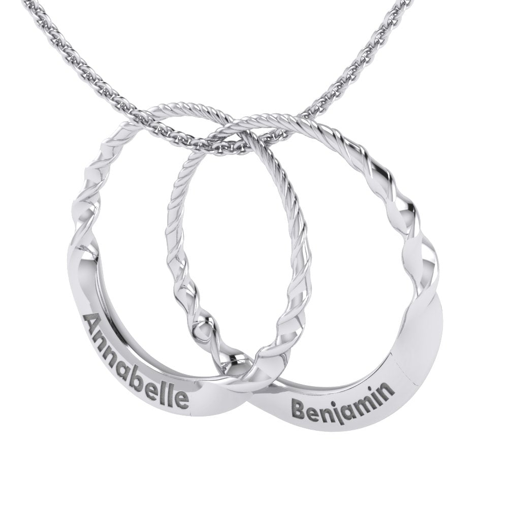 This exquisite 30mm diameter pendant is crafted and features a Double Disk Customised name design. Personalise the front with engravings, with the option to engrave the back with two more engravings with (additional Charges).