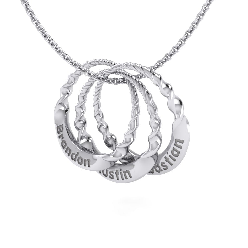 This exquisite 24mm diameter pendant is crafted and features a Triple Disk Customised name design. Personalise the front with three engravings, this design provides the option to engrave the back (Additional charges).