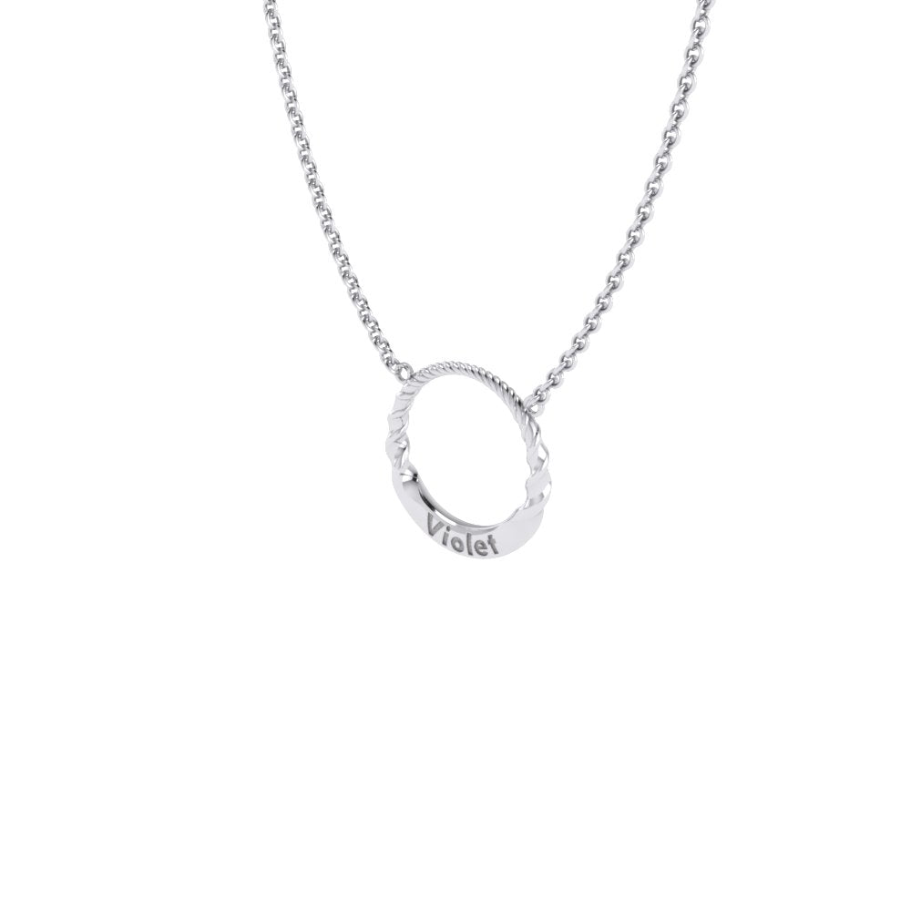 This 18mm diameter pendant is crafted and features a Single Twist Disk Customised name design. Personalise the front with one name engraving with the option to engrave back at (additional cost).