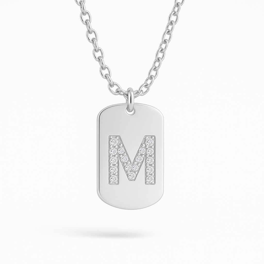 A bold statement of style, identity, and craftsmanship — this personalised pavé initial dog tag necklace is designed for those who love timeless jewellery with a modern edge.