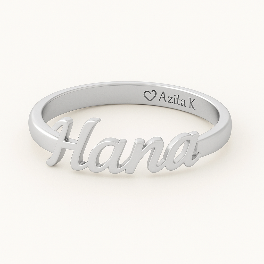 Subtle, stylish, and uniquely yours. Our handcrafted mini personalised name ring is designed to celebrate the names that mean the most — in a sleek, minimal form you’ll love wearing every day. Whether it’s your own name, a loved one’s, or a thoughtful gift, this bespoke piece is a timeless keepsake.