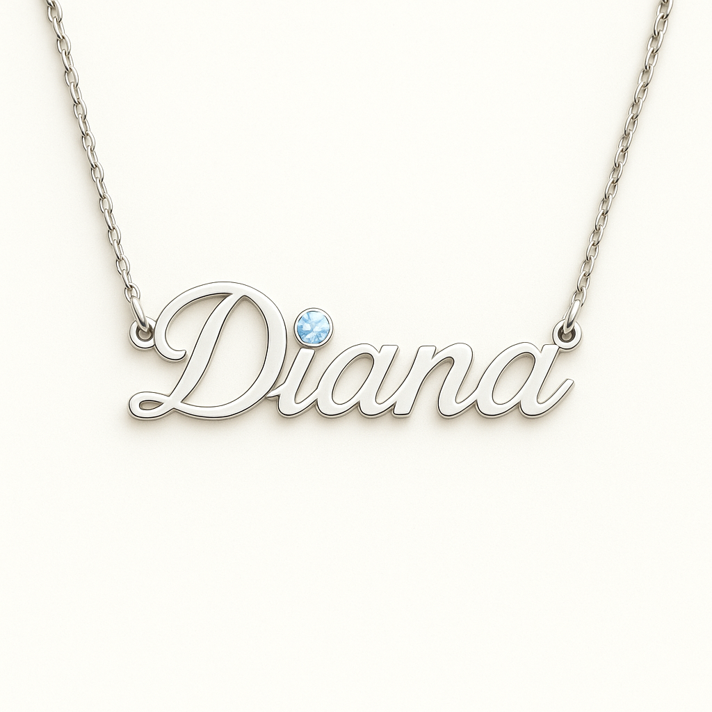 DescriptionAdd a personal touch to your jewellery collection with this custom name necklace featuring a sparkling birthstone....